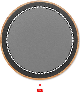 Trådlös laddare i akaciaträ och återvunnen PU. Anslut enheten till din dator, placera din smartphone på den och låt den laddas. Utgång: DC 9V/1,67A (15W). Kompatibel med alla QI-aktiverade enheter som senaste Androids, iPhone® 12, X och nyare.