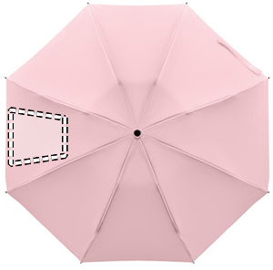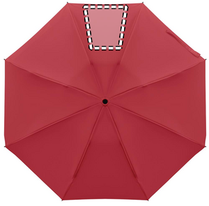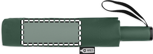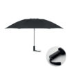 23-tums 3-faldigt omvänt stormsäkert paraply tillverkat av 190T RPET pongee och matchande påse. Automatisk öppning och stängning, helt svart pläterad ram, glasfiberribbor och ABS-handtag med gummiyt.