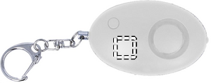 Mini personalarm som aktiverer når tappen trekkes ut. Festet til en nøkkelring, LED-lys og 3 batterier inkludert.