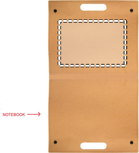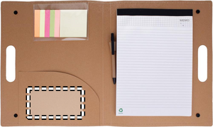 Konferansemappe med 6 farget post-it, 20 siders linjert blokk og penn med blått blekk