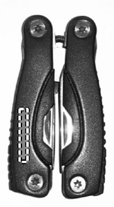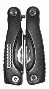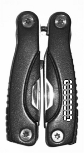 Sammenleggbart multiverktøy med 9 funksjoner. Levers i en liten veske.