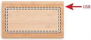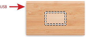 Power bank 4000 mAh capacity in Bamboo casing. Output current DC5V/2A. Includes indicating light and USB cable with Type C plug. In/Output: Type-C.
