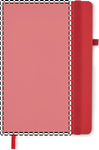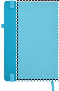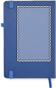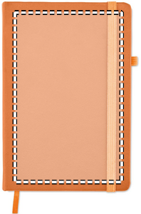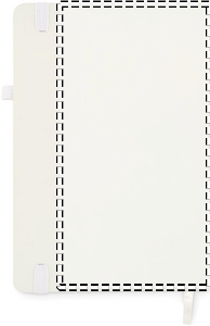 A5-anteckningsbok med omslag av 70% återvunnet läder och 30% latex-PU. Bunden pärm, 192 linjerade sidor i återvunnet papper (96 ark). Matchande elastisk bomullsstängning och pennhållare.