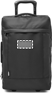 600D RPET polyester soft side trolley. Two large zippered inner compartments. One zippered front pocket and side and top handle. Including a combination lock and double tube frame. 2 wheels.