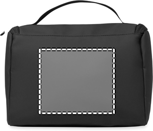 Necessär i mjuk PU med upphängningskrok och 210D RPET-foder. Ett stort huvudfack med inre nätfack med dragkedja och 1 nätfack.