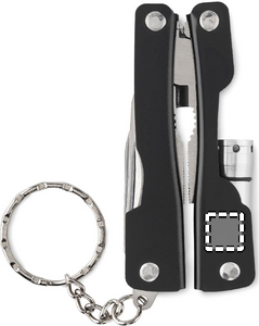 Vikbar multiverktygskniv med ficklampa i rostfritt stål. Innehåller 10 verktygsfunktioner samt väska i 600D polyester. Inklusive 3 x AG3 knappceller.