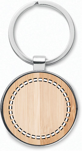 Rund nøkkelring av sinklegering med bambusfront. Bambus er et naturlig materiale, og det kan være små variasjoner i farge og størrelse, noe som kan påvirke merkingen. FSC 100% | N5.7 | FSC-C213206