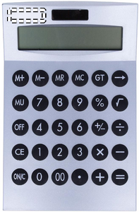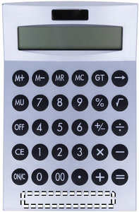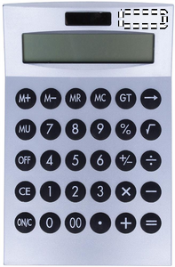 Tolv siffret solcelle kalkulator i plast. 1 celle batteri medfølger.