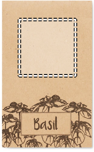 Basilikafrön i pysselkuvert.