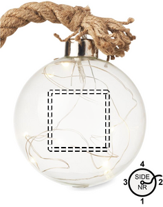 Glass bauble (Ø 8 cm) with string of 8 LED warm yellow lights and jute cord. 2 AA batteries excluded. Decorate your home with this glass ornament with LED lights. The jute rope gives it a natural look.