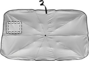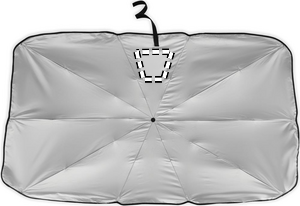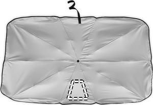 Windshield sun shade car umbrella in 190T pongee with 1 side silver. Manual open/close.