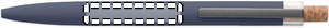 Penna i återvunnen aluminium med korkdetaljerad knapp och metallklämma. Blått bläck.