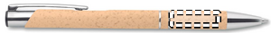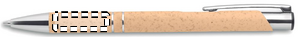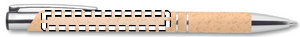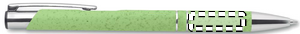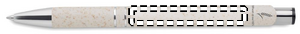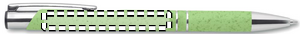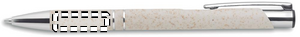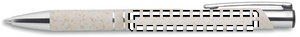 Kulepenn laget av 50% hvetestrå og 50% ABS-plast med sølvfargede detaljer. Blandingen av hvetestrå i plastmaterialet reduserer plastforbruket med halvparten. Blått blekk.