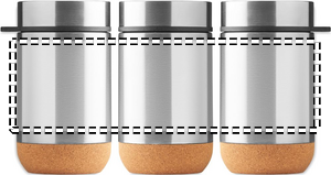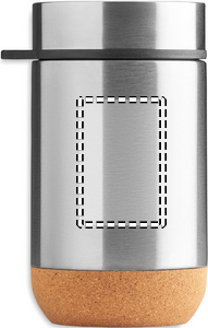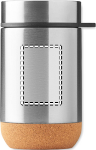 Double wall stainless steel insulated storage jar with a screw top and cork base detail. Includes spoon. Capacity: 400ml.
