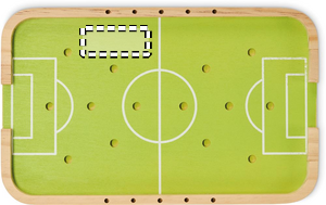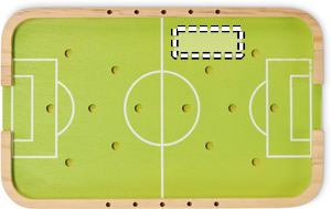 Fotbollsspel i trä. Innehåller spelare, boll, skytt och målstickor.