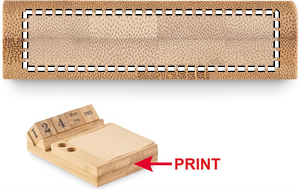 Skrivbordskalender i bambu med telefonhållare, 2 pennhållare och 50 blad sticky notes. FSC®-certified | FSC 100%, N5.7, FSC-C213206.