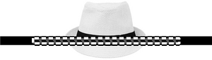 Stråhatt av papper med svart polyesterband. För otryckta beställningar kommer bandet att levereras utan att fästas på artiklarna.