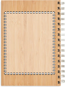 Bamboo cover notebook. Twin-wire ring bound, 140 lined kraft paper pages (70 sheets).