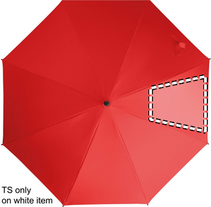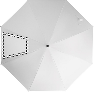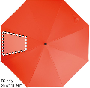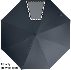 23 tum automatiskt öppningsbart, stormsäkert paraply med skaft i glasfiber och paneler i 190T pongee-tyg. Spetsar och topp i plast. Böjt handtag i gummerad PP-plast. Manuell stängning.