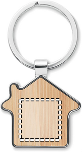 Nøkkelring formet som et hus av sinklegering med bambusfront. Bambus er et naturlig materiale, og det kan være små variasjoner i farge og størrelse, noe som kan påvirke merkingen.