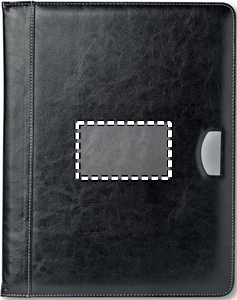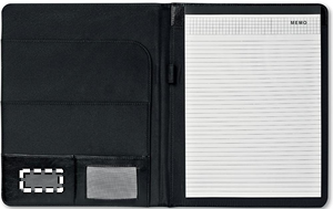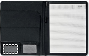 Konferansemappe med metall plate for logo. 20 siders notatblokk medfølger.