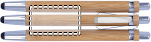 Trykknapp kulepenn i bambus med soft touch spiss, blått blekk