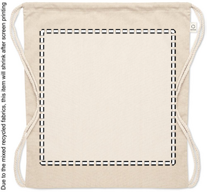Gymnastikpåse i bomull av återvunna textilier (70 %) och RPET (30 %). 140 gr/m².