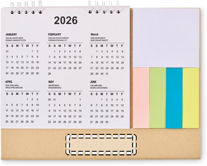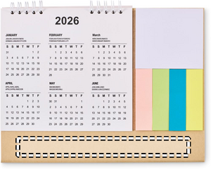 4-årig skrivbordskalender med 3-delade klisterlappar och memopad i kartonghållare. FSC®-certified | FSC MIX, P8.6, FSC-C213206