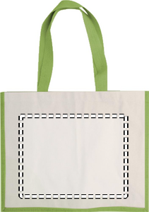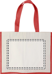 Shoppingkasse i laminerad Jute med front i canvas och bomull. Långa handtag. Denna produkt är certifierad enligt OEKO-TEX® STANDARD 100.