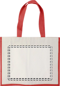 Shoppingkasse i laminerad Jute med front i canvas och bomull. Långa handtag.