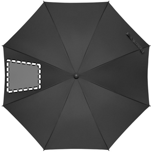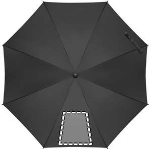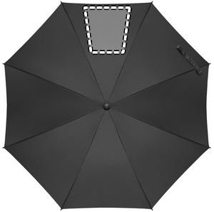 23 tums vindskyddat paraply med automatisk öppning i 190T pongee med rutmönster på insidan. Glasfiberram med svartpläterat skaft och plastspetsar. Böjt gummerat handtag. Manuell stängning.