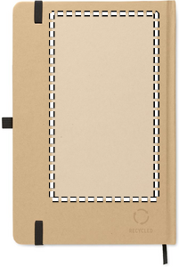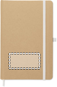 A5 anteckningsbok med omslag av hård återvunnen kartong. Inbunden med 160 linjerade sidor (80 ark återvunnet papper). Elastisk stängsningsband och pennhållare, sidomarkeringsband. Inklusive penna med kropp av återvunnet papper. Blått bläck
