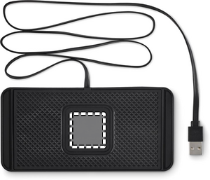 Trådlös billaddare 15W, glidskydd i PVC. Justerbar, kanterna kan klippas för att passa storleken. Integrerad USB A-kabel, längd 120 cm