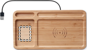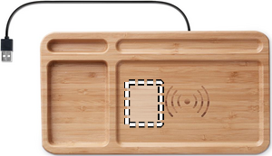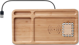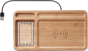 Bambus skrivebordstativ med trådløs ladestasjon. 80 cm USB-ladekabel inkludert. Utgang DC5V/1A (5W).