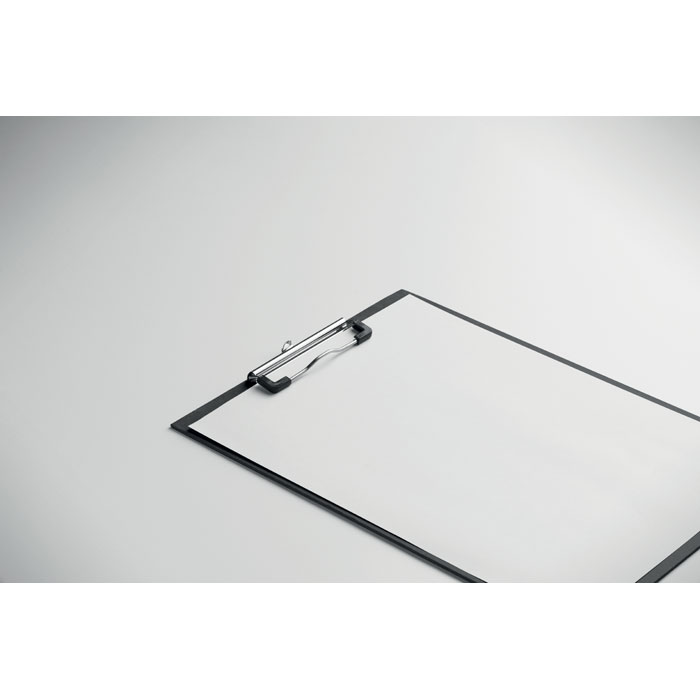 A4-hållare av kartong med pappersomslag och silverfärgad järnklämma. Lättviktsdesign på 125 g, perfekt för vardagligt bruk på kontoret eller i skolan.