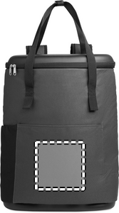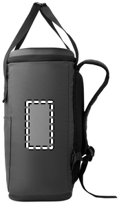 Kylryggsäck tillverkad av vattenavvisande 600D RPET med PE-skumisolering och PEVA-foder. Med formgjutet lock, vadderad rygg i mesh, frontficka med dragkedja och sidofickor i mesh. Volym 20 liter.