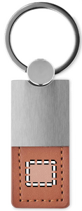 Nyckelring i metall och liten rem i imitationsläder. PU material.