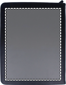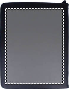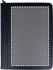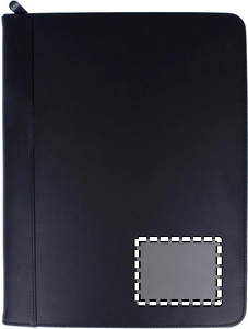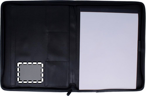 Konferansemappe med glidelås. Inneholder notatblokk med 25 blanke sider.