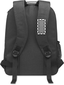 300D RPET-ryggsäck med 15-tums fack för laptop. Dragkedjeficka fram och ett nätfack på sidan.