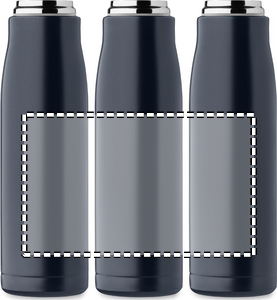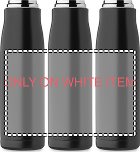 Dubbelväggig vakuumisolerad flaska i återvunnet rostfritt stål (90% återvunnet rostfritt stål och 10% rostfritt stål) med integrerat sladdgrepp på PP-lock. Läckagefri. Volum: 500 ml.