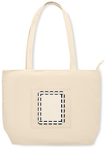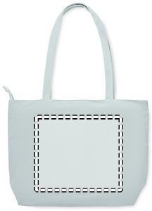 Stor shopping-/strandväska i polyestermanchester med dragkedja upptill, öppen framficka och innerficka. 220gr/m².