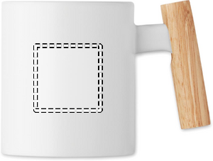 Keramikmugg med handtag av trä. Volym: 320 ml. Produkten kräver handdisk. Individuellt förpackad i vit kartong.