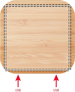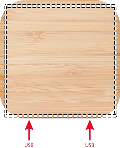 Trådløs ladeplate i bambus med 2 USB-utganger.