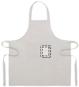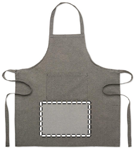 Justerbart köksförkläde med 1 framficka i 220 gr/m² återvunnen bomull. (80% recycled cotton, 20% regular cotton).