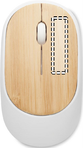 Wireless optical mouse in recycled ABS with bamboo top. 1 AA batteries not included. Bamboo is a natural product, there may be slight variations in colour and size per item, which can affect the final decoration outcome.