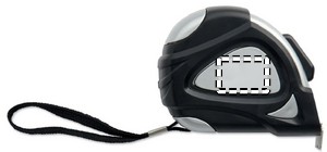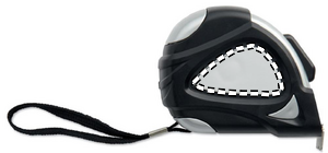 Målebånd, 3 meter i sølv / sort etui i ABS plast. Håndleddsstropper og praktiske klips.