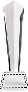 Pris eller trofé i kristall. Presenteras i en presentförpackning.