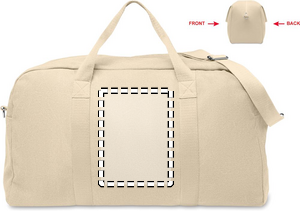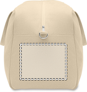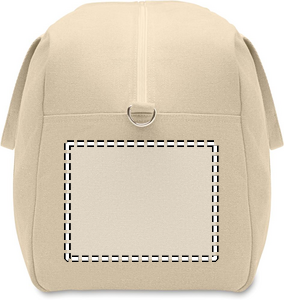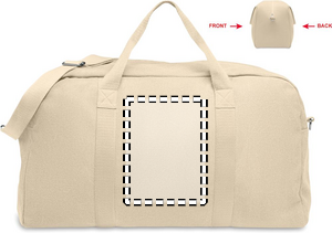 Duffelbag/väska i återvunnet 450 gr/m² tyg (60% återvunnen bomull och 40% återvunnen polyester) med justerbar och avtagbar bomullsrem.