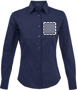 SOL'S EDEN, DAMESKJORTE MED LANGE ERMER I STRETCH, 97 % bomull – 3 % elastan 140 stretch poplin, tettsittende passform, lange ermer, krage med én knapp, justerbare mansjetter med 2 knapper og kappefeste, knappestolpe med 7 ton-i-ton-knapper, innstikk foran og bak. For informasjon om størrelsesvalg, se størrelsestabellen i produktdokumentasjonen.