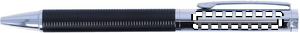 Elegant gavesett i EVA-emballasje. Med en svingbar kulepenn med påfyll i blått blekk, nøkkelring i metall med PU-løkke og PU-lommebok med kontrastsøm.